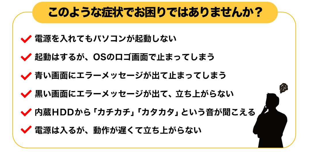 黒い画面にエラーが出てOSが立ち上がらなくなった状態のパソコンからデータ復旧
