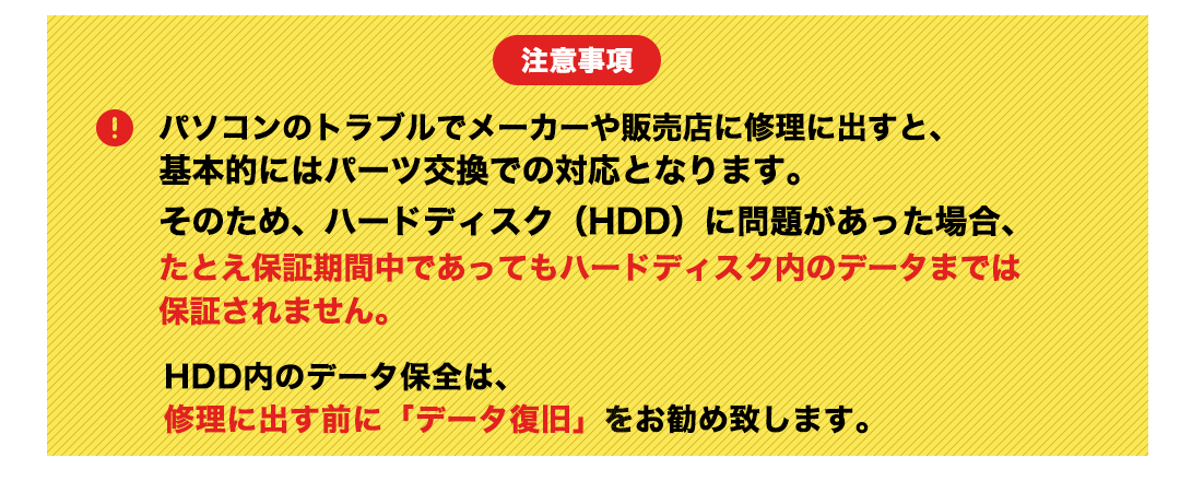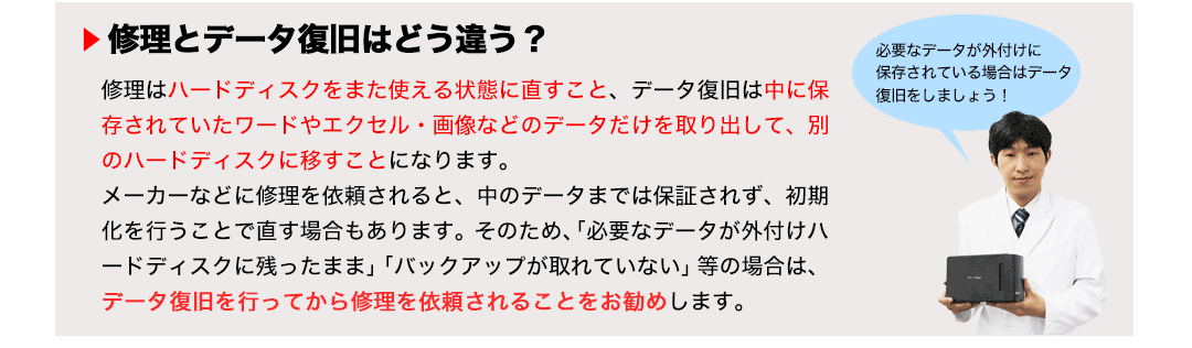 仕事で使っているデータが多くあるためデータ復旧をお願いします。