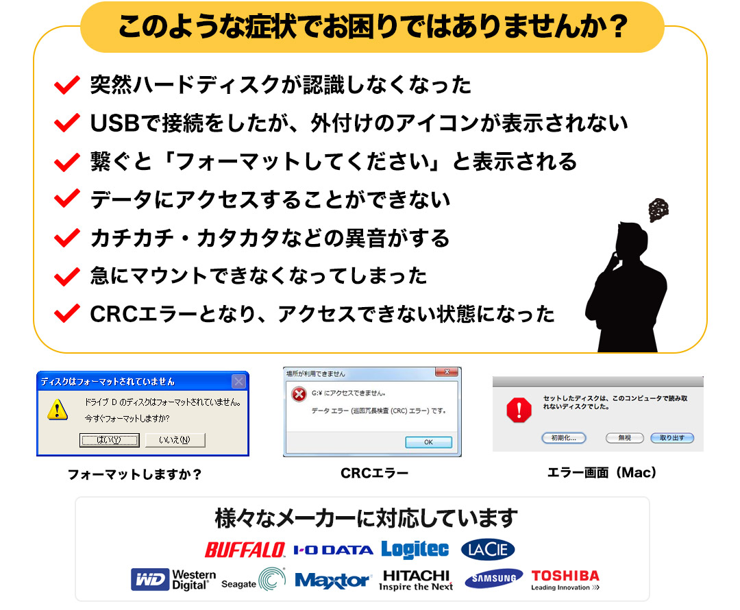 法人様(製造業)お客様に提出するデータの入った外付けHDDが読込不可に!