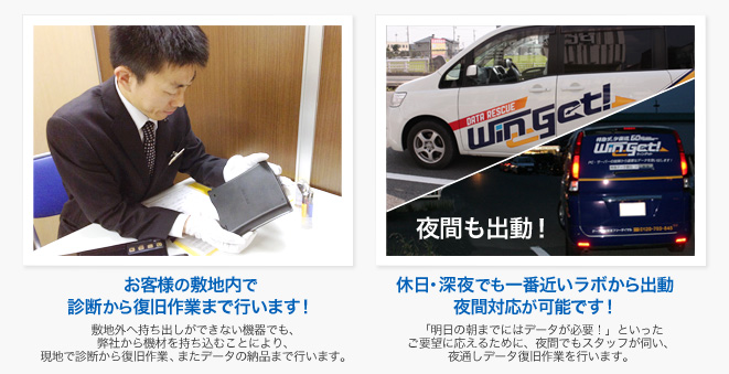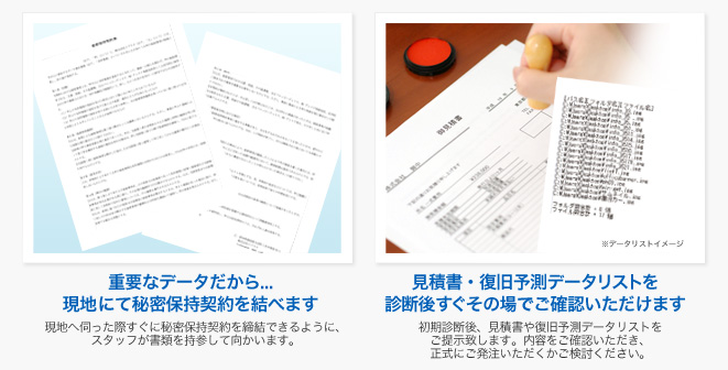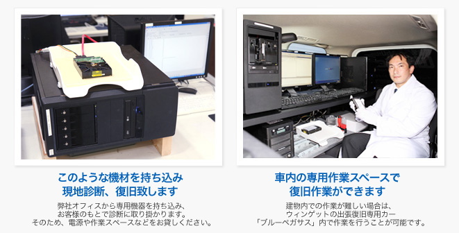 | お客様の声 | 1日で復旧してもらえたので仕事への影響を最小限にすることができ大変に助かりました。データもほぼ元の通りに復旧できたのでありがとうございます。 | ||